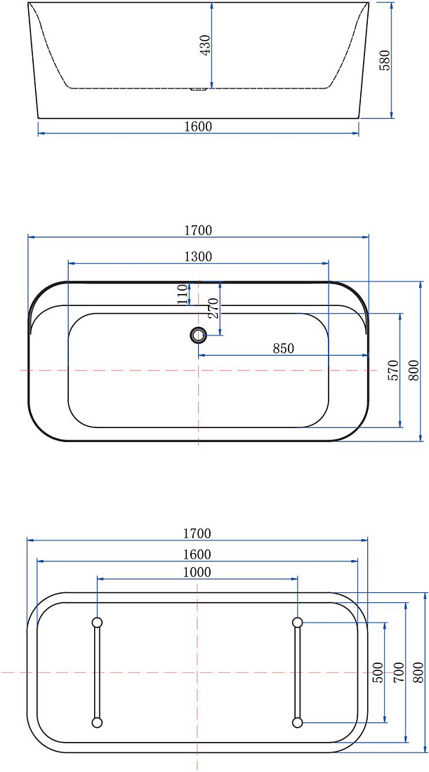 Расположение перелива: по центру