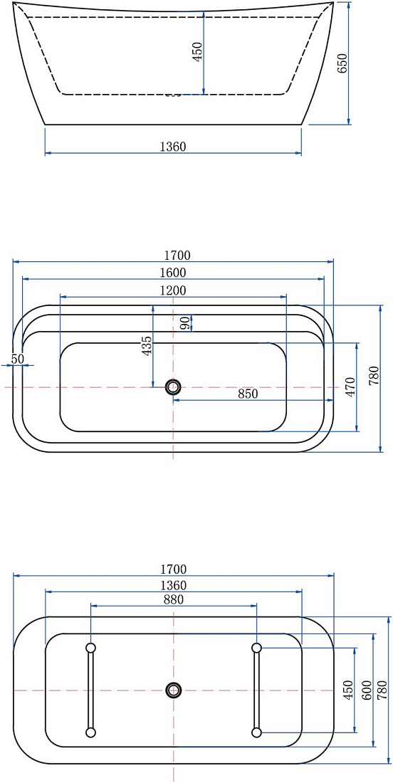 Расположение перелива: по центру