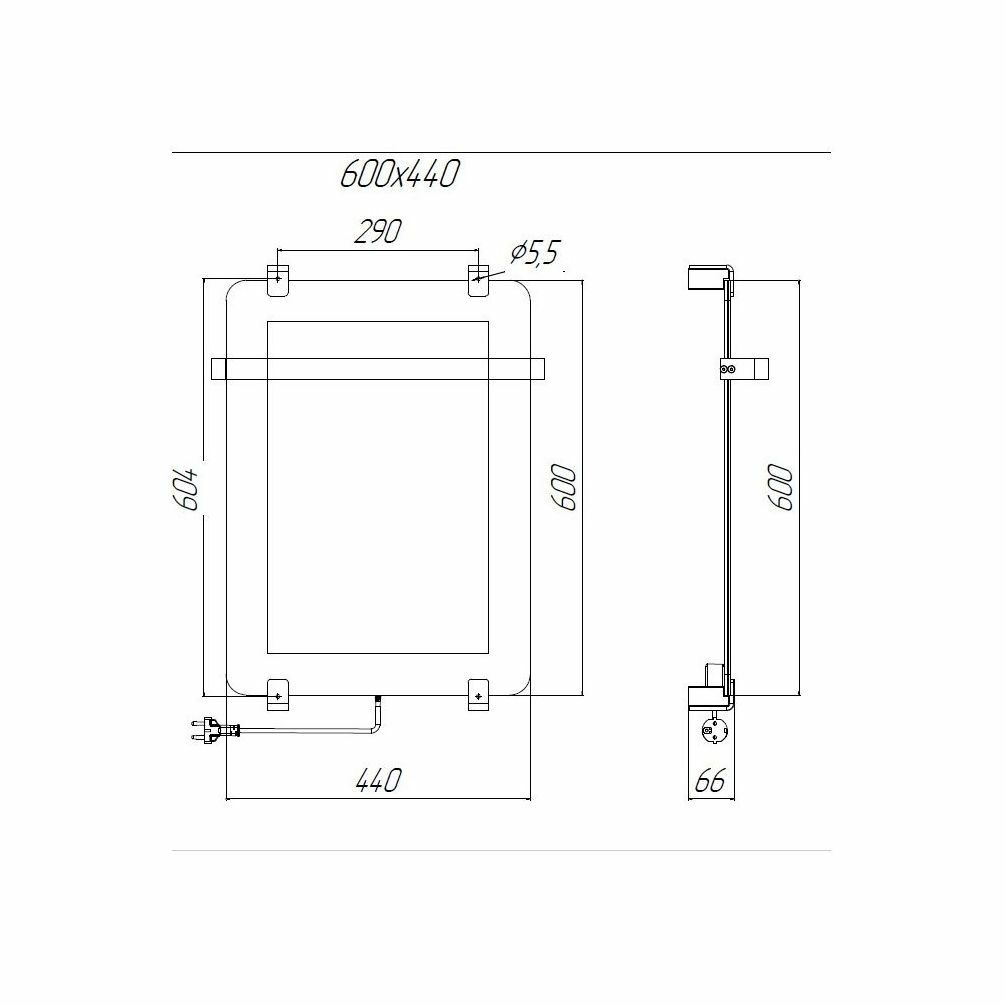 Электрический полотенцесушитель Allen Brau Infinity 60х44 зеркальный, с рейлингом 2.0 и креплением, черный браш (Код: 392316)